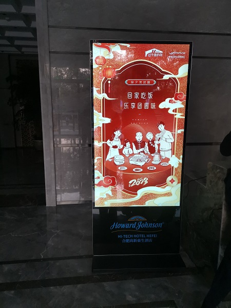 [廣告發(fā)布]合肥某品牌酒店采購(gòu)我司兩臺(tái)65寸立式廣告機(jī)用于播放宣傳視頻